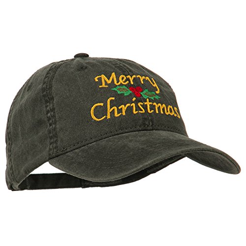 Title : Merry Christmas Mistletoe Embroidered Washed Dyed Cap - Black OSFM