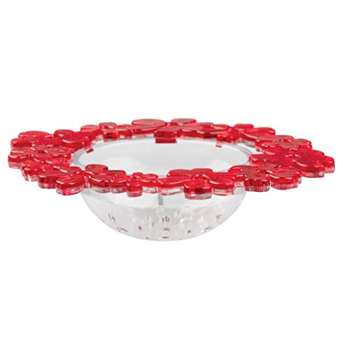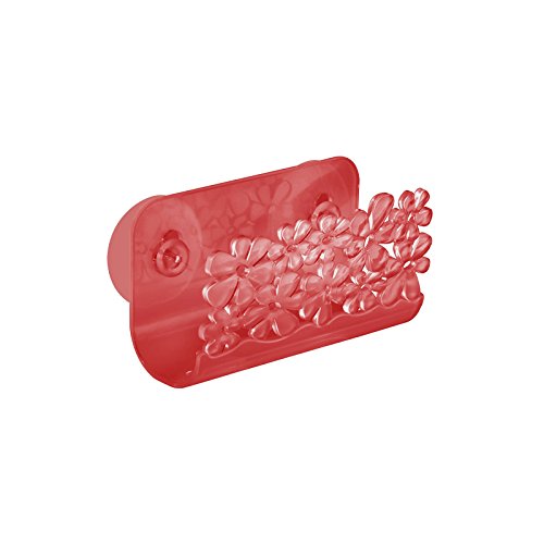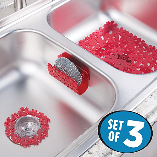 mDesign Floral Kitchen Sink Protector Mat, Sponge Holder, Drain Strainer - Set of 3, Red