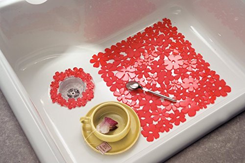 Mat protects delicate dishes and sink surface from damage, scratches and breaking; Strainer has open grid design and allows water to flow though easily while catching food and debris