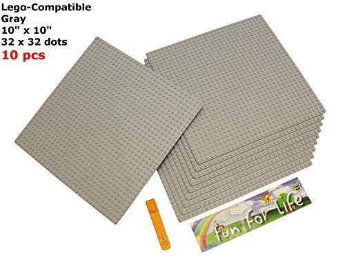-. Binding : Toy -. Brand : Fun For LifeTM -. EAN : 0700667112398 -. Feature : L.E.G.O-Compatible Brick Building Base 10'' x 10'' (10 Pack) Silver Gray Baseplate with a Brick Separator / The baseplate is 32 dots x 32 dots / 1 L.E.G.O Brick Separator(Colors may vary) / Compatible with L.E.G.O, Tyco, PixelBlocks, Mega Bloks, / Add another useful piece to your L.E.G.O collection with this Silver Gray Baseplate! -. IsAdultProduct : 0 -. Label : FUN FOR LIFE TM -. Manufacturer : FUN FOR LIFE TM -. ProductGroup : Toy -. ProductTypeName : TOYS_AND_GAMES -. Publisher : FUN FOR LIFE TM -. Studio : FUN FOR LIFE TM -. Title : L.E.G.O-Compatible Brick Building Base 10'' x 10'' (10 Pack) Silver Gray Baseplate with a Brick Separator- by Fun For Life -. UPC : 700667112398