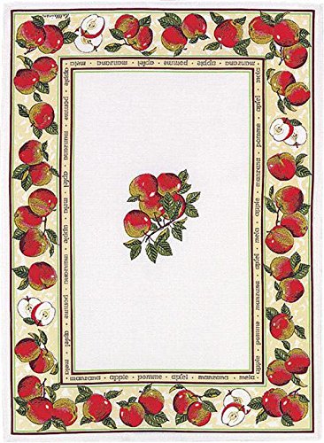 Mierco Fine European Linens 3Apple Border Cotton/Linen blend Tea Towel Design Table Topper, 20 by 28-Inch, Apple Border