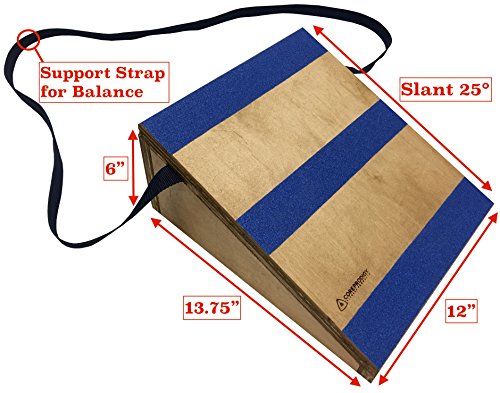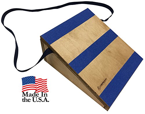 Studio : Core Prodigy Publisher : Core Prodigy Binding : Misc. Product Description Calf strength is critical for everyday activities. As your calf muscles undergo a lot of use, the muscles can easily become tense. To increase flexibility in your calves, the Slant Board by Core Prodigy can help stretch these important muscles. Strong and durable birch wood calf stretcher board. Thick wood and stainless steel hinges makes the Core Prodigy Slant board tough and stable. Support weight is 300lbs. Size is 12" (Width) x 13.75" (Length) x 6" (Height). Created to focus and stretch the arch of your feet, calves, hamstring and hip muscles. Our calf stretch board has a variety of applications, such as: Rehabilitation (rehab), athletic performance enhancement, physio, and injury prevention. Can be used at home, at work or in a clinic setting. Can also be used under your office desk as a foot rest. A useful piece of exercise equipment to increase flexibility in your calves, feet and hamstrings. Proudly handcrafted and stained in the United States by Core Prodigy Fitness Equipment. Fully Assembled, Ready to Use Out of Box; Exercise Guide Included 0