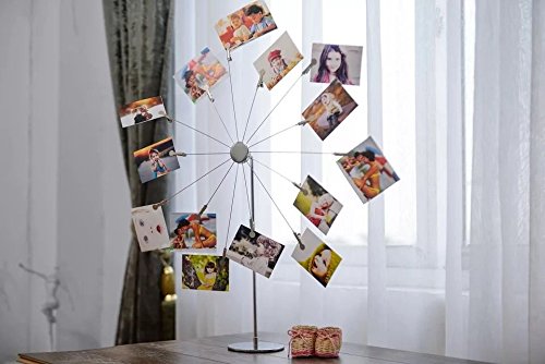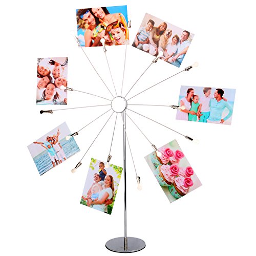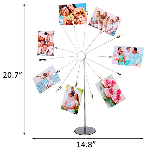Kufox Metal Sunflower Style 14 Branches Clip Photo Display Stand, Photos/Notes/Postcards/Papers Desktop Holder For Decor,Size : 20.7"x 14.8",Set Of 1