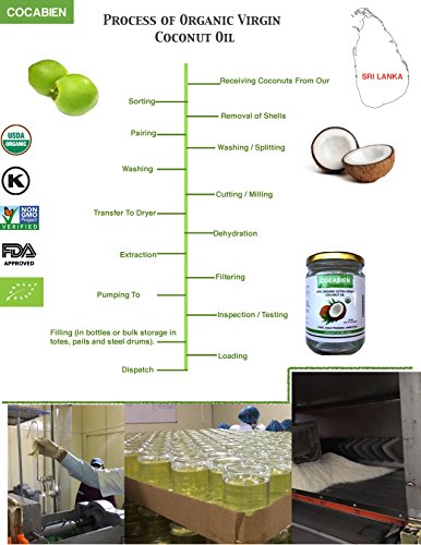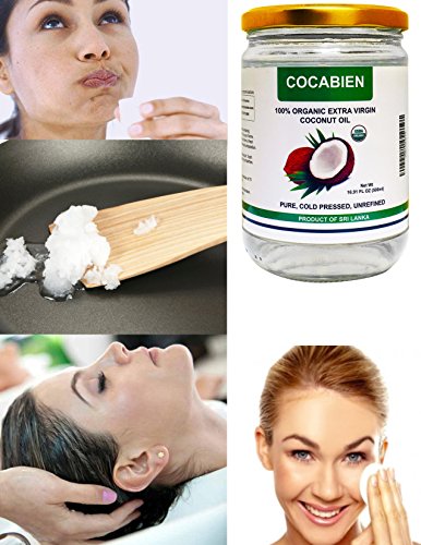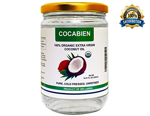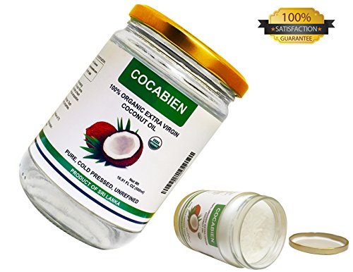 Cocabien Organic Extra Virgin Pure MCT Cold Pressed Kosher Coconut Oil For Baking Cooking Hair Baby Skin Treatment Moisturizer Pets Unrefined In Glass Jar NON-GMO 16.9oz