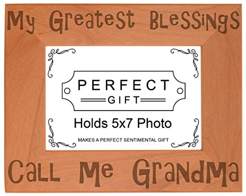Mother's Day Gift Blessings Call Me Grandma Natural Wood Engraved 5x7 Landscape Picture Frame Wood