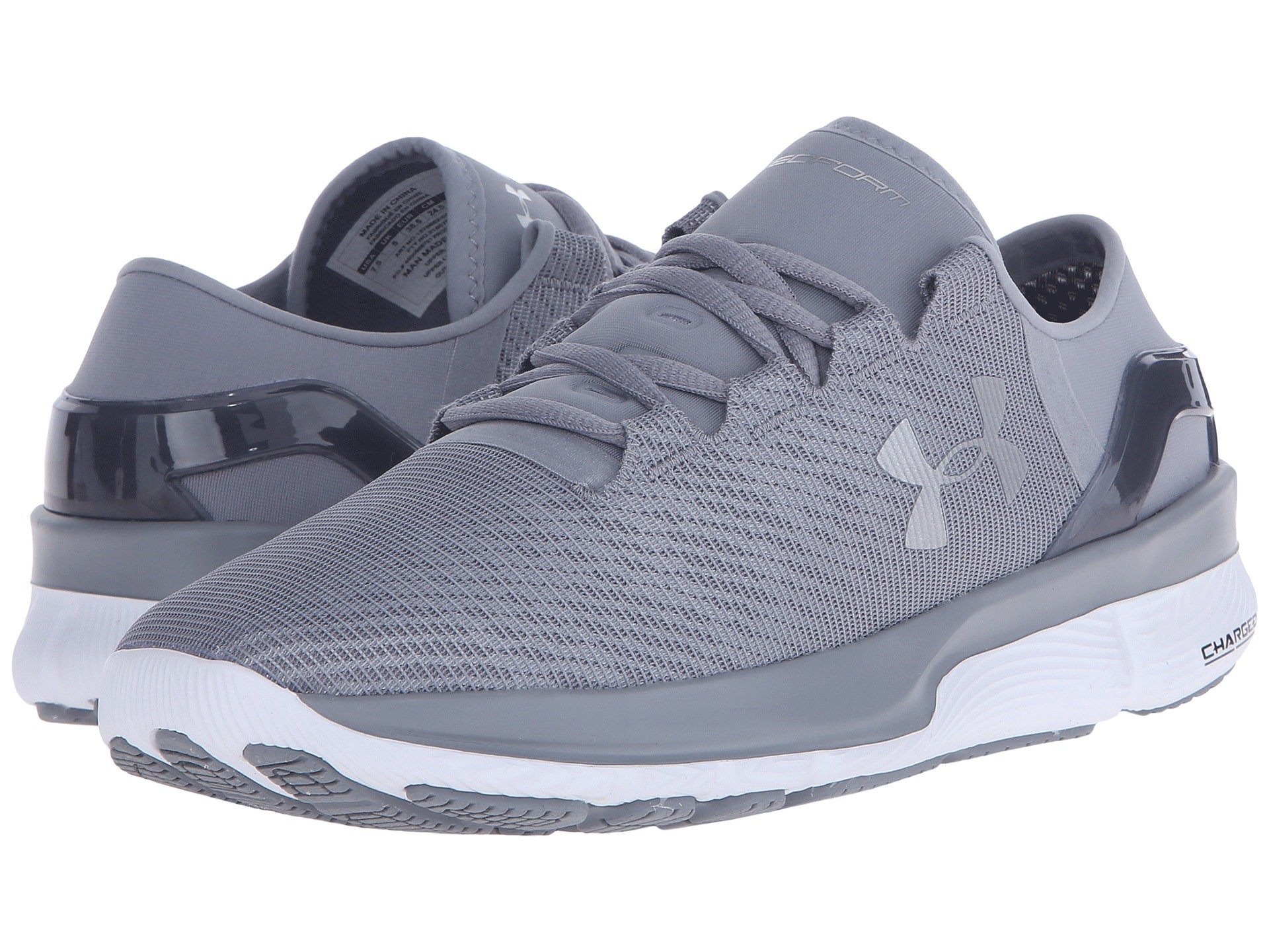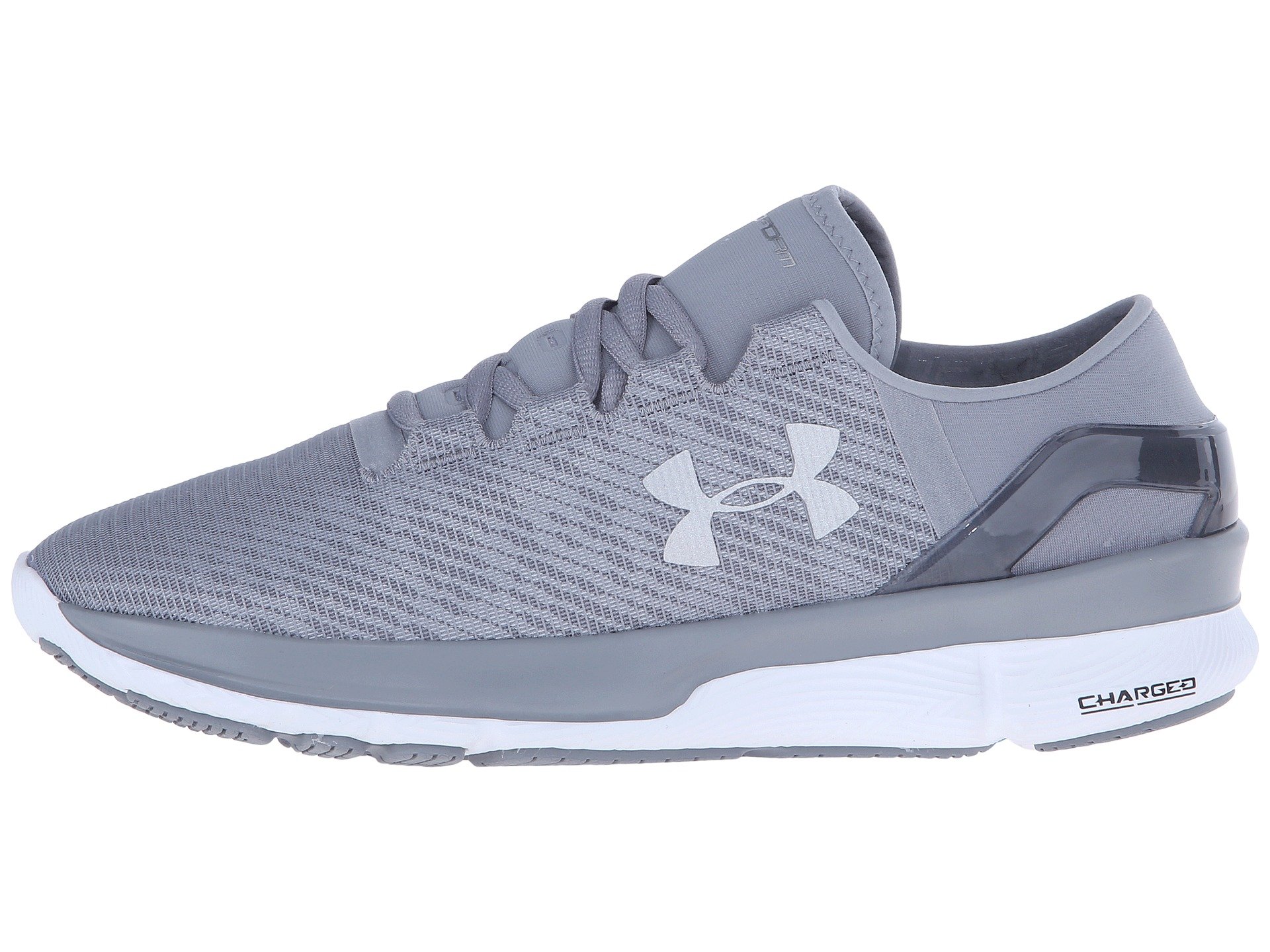 | Product Information SKU: #9023245Today is a good day to have a good run . . . Put the pavement behind you in the responsive cushioning of the Under Armour? SpeedForm™ Apollo 2 R running shoe!Predecessor: None.Support Type: Neutral to underpronation (supination).Cushioning: Lightweight, flexible response.Surface: Road.Differential: 8 mmReflective, perforated textile upper with ultrasonic seal provides breathability and 360-degree visibility in low lighting. Devised in a clothing factory, UA SpeedForm? upper technology promotes a precise fit and ensures optimal comfort. Smooth, ultrasonic welded seaming with Bemis tape supplies structural support and next-to-skin comfort. Lace-up closure. Thin comfort tongue.Foam-infused collar offers better lockdown.Fixed insole wicks moisture for a cooler, drier feel. Dual-layer midsole utilizes Charged Cushioning™ on top of MicroG? foam for an ideal blend of plush support and explosive responsiveness.Arch reinforcement guides the foot and enhances the fit. Anatomically designed rubber outsole delivers natural flex and lasting wear. Imported. Weight of footwear is based on a single item, not a pair. |