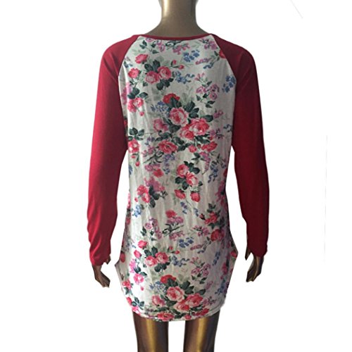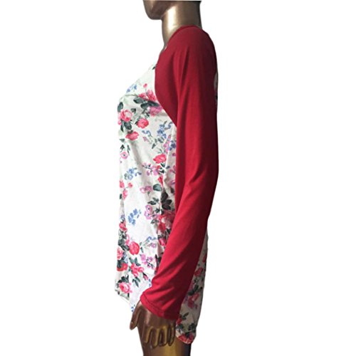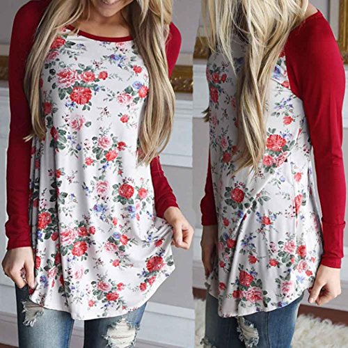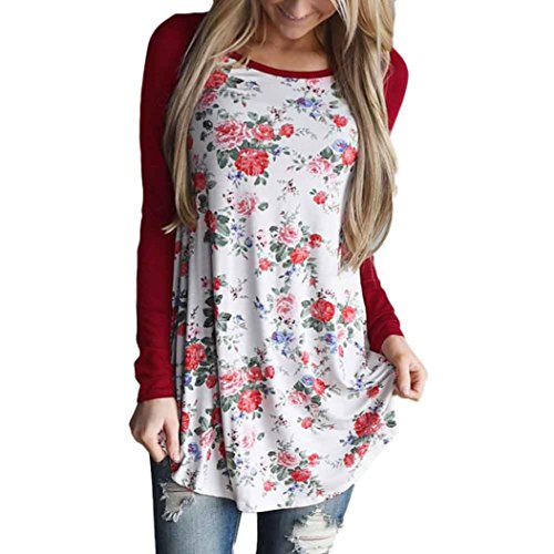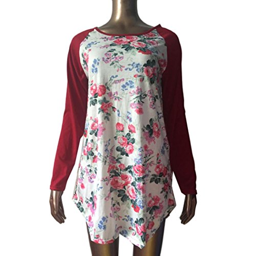-. Title : Perman Women Floral Striped Splicing O-Neck T-Shirt Blouse Long Sleeve Top