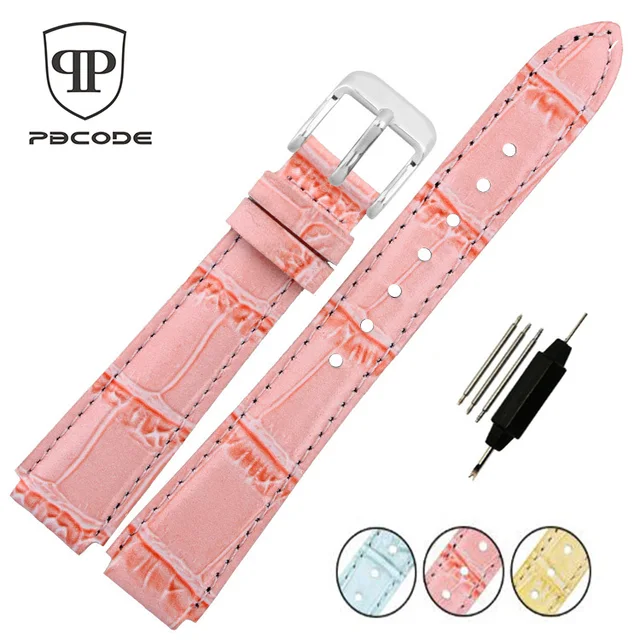 | [해외]소 가죽 양각 다채로운 핑크 노란색 빛 블루 18x14 18 미리메터 여성 정품 가죽 시계 스트랩 LTP2069 맞는 |