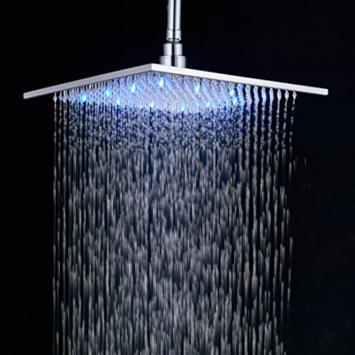 LED Colors 12 Inches Top Shower Head Chrome Brass Rainfall Over-head Sprayer