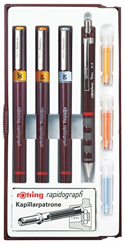 Rotring Rapidograph Technical Drawing Pen Junior Set, 3 Pens with Line Widths of 0.2mm to 0.6mm, Brown (S0699490)
