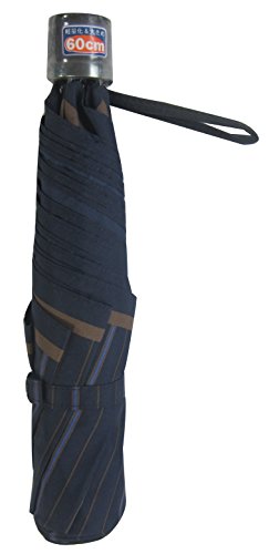 -. Title : 大きめ軽量グラスファイバー骨仕様3段式2色ストライプ60cm折りたたみミニ傘(紺)