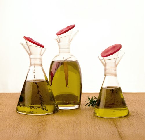 -. Feature : Exclusive and patented non-drip "two lip system" / Hand blown glass container and easy-to-fit pourer / No more messy oil or syrup containers in the kitchen or on the table / A perfect gift / Imported from Spain