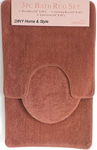 3 Piece Bath Rug Set Bathroom Mat Contour Rug Lid Cover Non Slip Latex Bottom Terracotta Shades of Red
