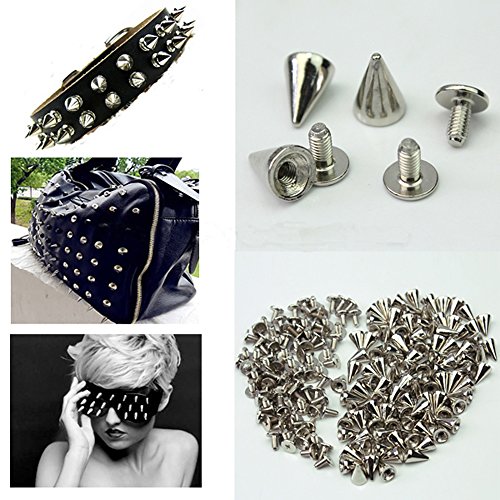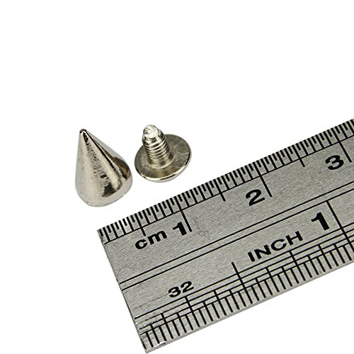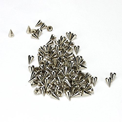 YoYoflyer 100pcs 10mm Length Silver Cone Metal Studs Rivet Spikes Screw for Punk Gothic Style Clothes Shoes Bag Leather DIY Rivets
