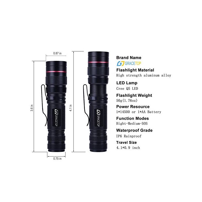 원본상품명:Gracetop 小型?量 ミニ高輝度LED?中電?miniライト 軍用 ズ?ム式3モ?ド ?力 XPG LED ポ?タブル ?3電池/14500電池??