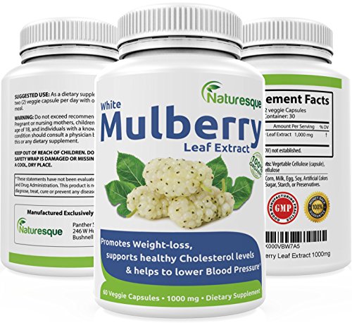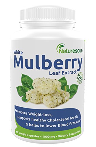 -. Binding : Health and Beauty -. Brand : Naturesque -. Color : White -. EAN : 0635648661698 -. Feature : CONTROLS APPETITE & REDUCES CRAVINGS: Naturesque Mulberry extract contains healthy nutrients, antioxidants, vitamins and minerals that may benefit your weight loss program, helps you maintain a healthy diet and gradually lose weight. / HELPS LOWER BLOOD SUGAR: Mulberry extract helps to lower blood sugar by reducing the absorption of sugar into your body, supporting Healthy Blood Sugar levels. / HIGH IN DIETARY FIBER: Fiber improves your body's control over your blood sugar levels, swells in your stomach after meals to promote a sense of fullness, and loosens your stool to help fight constipation. / A GREAT SOURCE OF ANTIOXIDANTS: Antioxidants help lessen the damage caused by free radicals. The entire mulberry plant including leaves, stems, and fruit, contains antioxidants. / A GREAT NUTIRENT-DENSE FOOD: Mulberry extract contains healthy fiber, carbohydrates and protein to fuel your body to keep your body healthy. Start using Naturesque White Mulberry Leaf Extract today! ***100% RISK FREE MONEY BACK GUARANTEE*** -. IsAdultProduct : 0 -. Label : Naturesque -. LegalDisclaimer : Naturesque is a registered brand on Amazon and you are not allowed to resell Naturesque products under our brand name anywhere on Amazon or elsewhere. ** These statements have not been evaluated by the Food and Drug Administration. This product is not intended to diagnose, treat, cure or prevent any disease. ** Do not exceed recommended dose.** Keep out of reach of children.** Pregnant or nursing mothers, children under the age of 18, and individuals with a known medical condition should consult a physician before using this or any dietary supplement. -. Manufacturer : Naturesque -. PackageQuantity : 1 -. ProductGroup : Health and Beauty -. ProductTypeName : HEALTH_PERSONAL_CARE -. Publisher : Naturesque -. Studio : Naturesque -. Title : #1 White Mulberry Leaf Extract | 1000mg | Low Blood Sugar | Rich in Antioxidants & Fiber Helps in Weight Loss | 60 Veggie Capsules Pills Natural Finest Quality Non GMO Premium Supplement By Natureque -. UPC : 635648661698