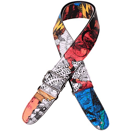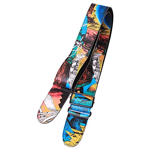 -. Feature : Made of high quality PU Leather, Soft, Thick, Durable and Extra Comfortable Design. / Width: about 2 inch (5cm) width. Length: 34.6-57.5 (88cm-146cm)inches. / Comfort Edge PU Leather saving your neck from irritation. / High definition sublimation P.R.Inting (Eco-friendly P.R.Inting),no fading. / Light Weight, Easy to carry. Perfect for Electric & Acoustic guitar, and Bass.