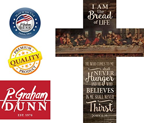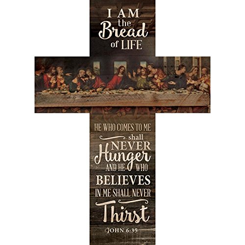 Bread Of Life Last Supper Scene Distressed 20 x 14 Wood Wall Art Plaque Cross