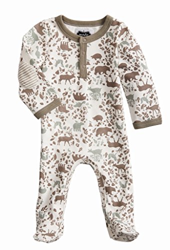 Feature : Cotton interlock woodland print footed sleeper / It features elbow patch appliqués, contrast binding, front snap placket and inner leg snap closure. / Inner leg snap closure. / Choose size: 3-6 Months, 6-9 Months. / Each sold separately.