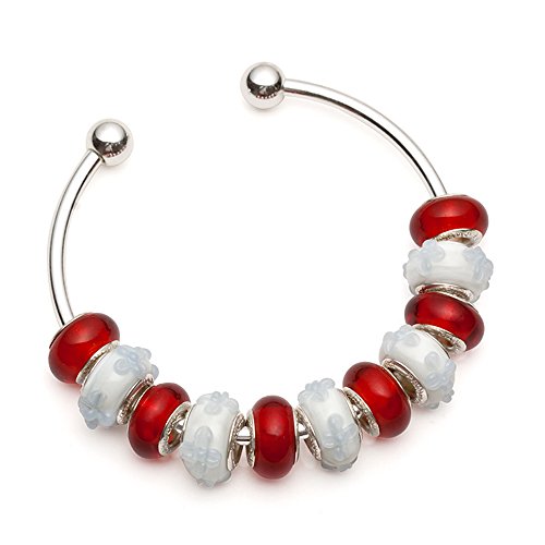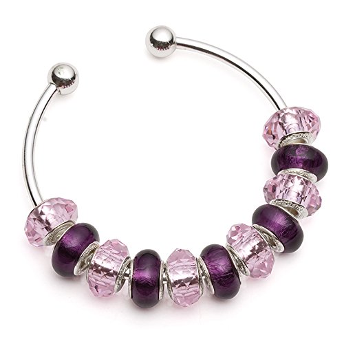 RUBYCA 5pcs White Silver Plated Bangle Bracelet Screw End Ball Cuff Charm Beads DIY Jewelry