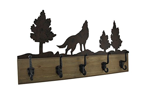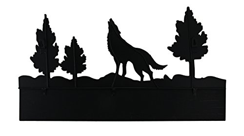 Wood and Metal Howling Wolf Forest Shadow Wall Hook Hanging