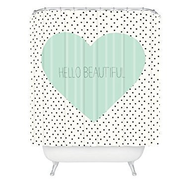 YEHO Art Painting Allyson Johnson Hello Beautiful Heart Shower Curtain Set with Hooks (60" Wide X 72" Long),Rings Accessory Included