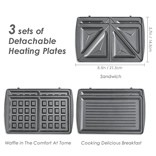3.Comes with 3 sets of plates-one for waffles, and one for sandwiches,panini