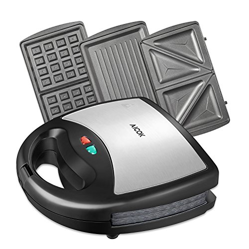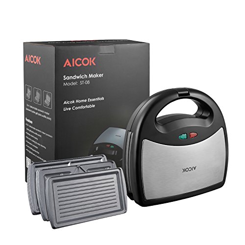 Portable Sandwich Maker: Aicok sandwich maker has portable size can take any where to use, Upright storage, safe-style floating lid evenly presses any size sandwich