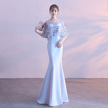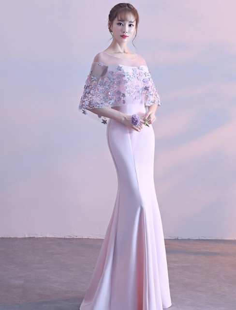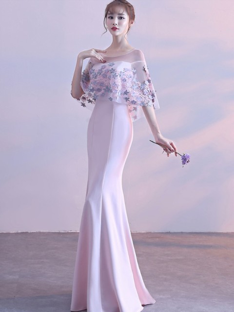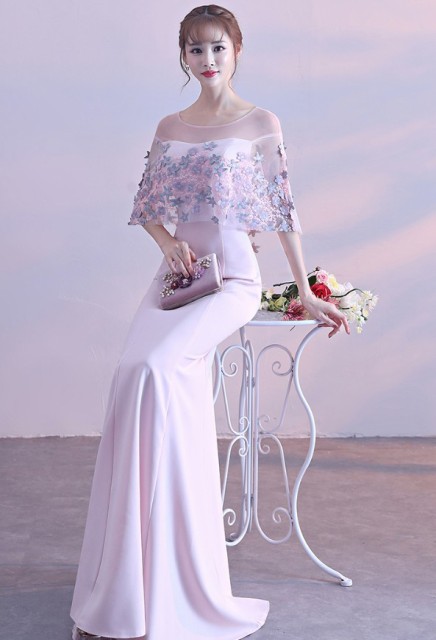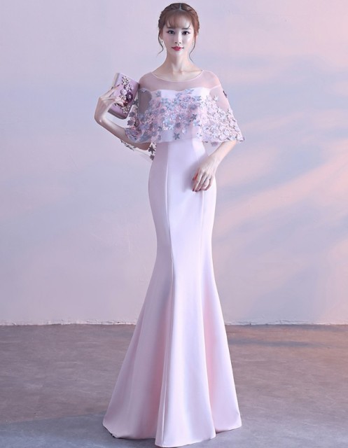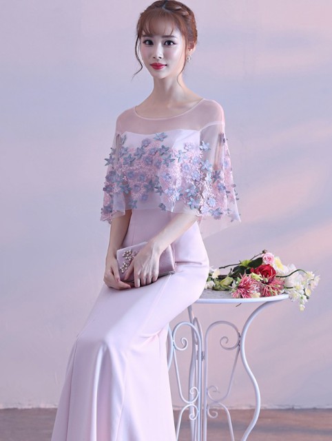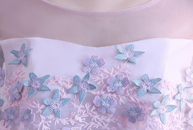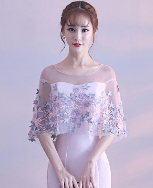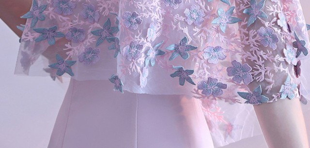 前身頃のボレロのようにちりばめられたコサージュが華やか