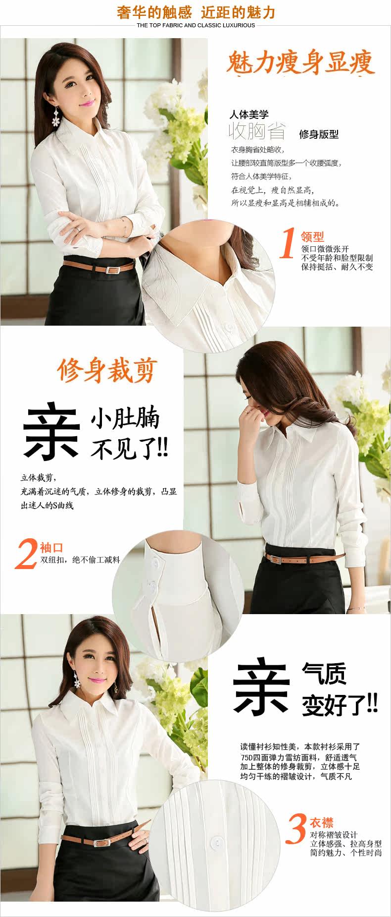 职业衬衫女长袖春夏新款韩版修身面试工作服寸衫衬衣女正装