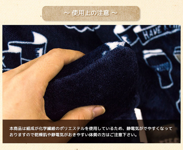 注意点:組成が化学繊維のポリエステルを多く占めているため静電気が発生しやすい仕様となっております。