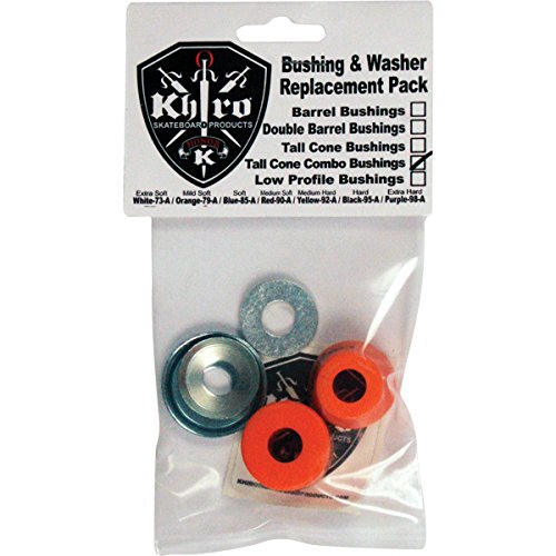 Studio : Khiro Publisher : Khiro Product Description These 79a Khiro Tall Cone / Large Barrel Mid Soft Bushings will keep your skateboard trucks flexible and adaptable. They also come with washers, which is super convenient! The purpose of bushing washers is to prevent the bushings from getting deformed by the pressure exerted on the trucks. Made by Khiro from high-quality materials, they provide flexibility and easy adaptability for your skateboard trucks. Khiro Tall Cone / Large Barrel Mid Soft Bushings give you the best ride every time - hands down! Be sure to change your bushings frequently in order to keep your skateboard responsive to your personal skateboarding style.Includes: One (1) Khiro Tall Cone / Large Barrel Mid Soft Bushings from Khiro. 0