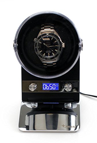 Studio : Jebely Publisher : Jebely Binding : Watch Product Description The Jebely Noble One features a back-lit LCD display and a turn dial that can set turns per day in increments of 50 from 650 to 3000. It also features 3 direction settings, clockwise, counter-clockwise, and bi-directional. The watch winder will also stop at twelve o'clock during rest periods, so your watch is always displayed in the upright position. This unique design has a clear display cover that pulls out and up, chrome finished metal base, LCD controls, and the option to power up by batteries or by the included power adapter.The Jebely Noble One features a back-lit LCD display and a turn dial that can set turns per day in increments of 50 from 650 to 3000. It also features 3 direction settings, clockwise, counter-clockwise, and bi-directional. The watch winder will also stop at twelve o'clock during rest periods, so your watch is always displayed in the upright position. This unique design has a clear display cover that pulls out and up, chrome finished metal base, LCD controls, and the option to power up by batteries or by the included power adapter. 0