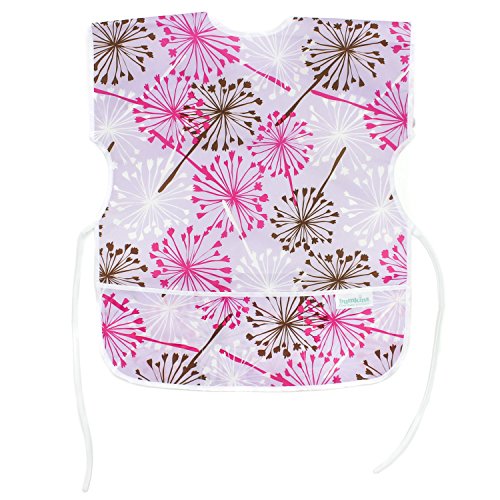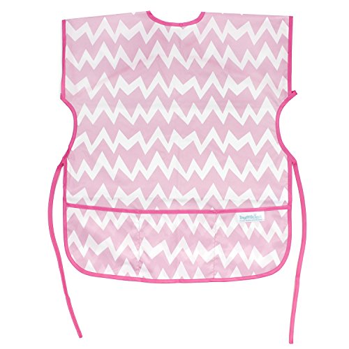 Perfect for the budding artist, the Short-Sleeved Art Smock keeps creativity from staining clothing. Made from Bumkins' lightweight, easy wipe, machine washable waterproof fabric. Sized to fit kids ages 3-7 years of age, the smock has an adjustable tie waist and a velcro neck closure to allow for a custom fit. With a pocket large enough to hold art supplies or catch drips and spills, the smock can also be used as a bib for messy eaters that may have outgrown our Junior Bib. Smock measures approximately 17" across, 20" from the neck down. BPA, PVC, vinyl, phthalate and lead free. Designed in Arizona, responsibly made in China.Feature