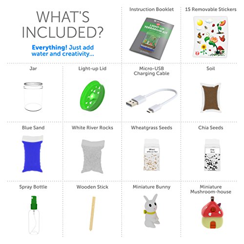 🌱 WHAT IS A TERRARIUM? It is a miniature garden within a container that simulates a natural environment. So, let your child discover the beauty of nature by creating their own beautiful terrarium with this all-inclusive kit. Watch as it grows by day and glows at night with the innovative LED light under the lid.