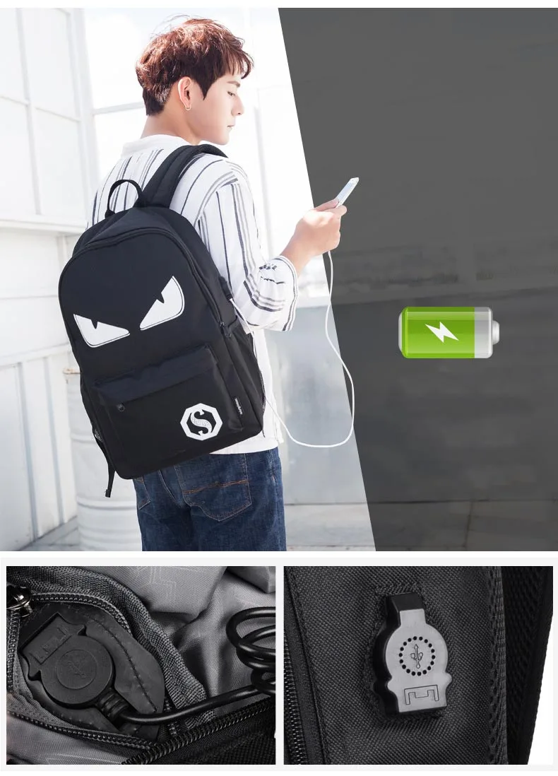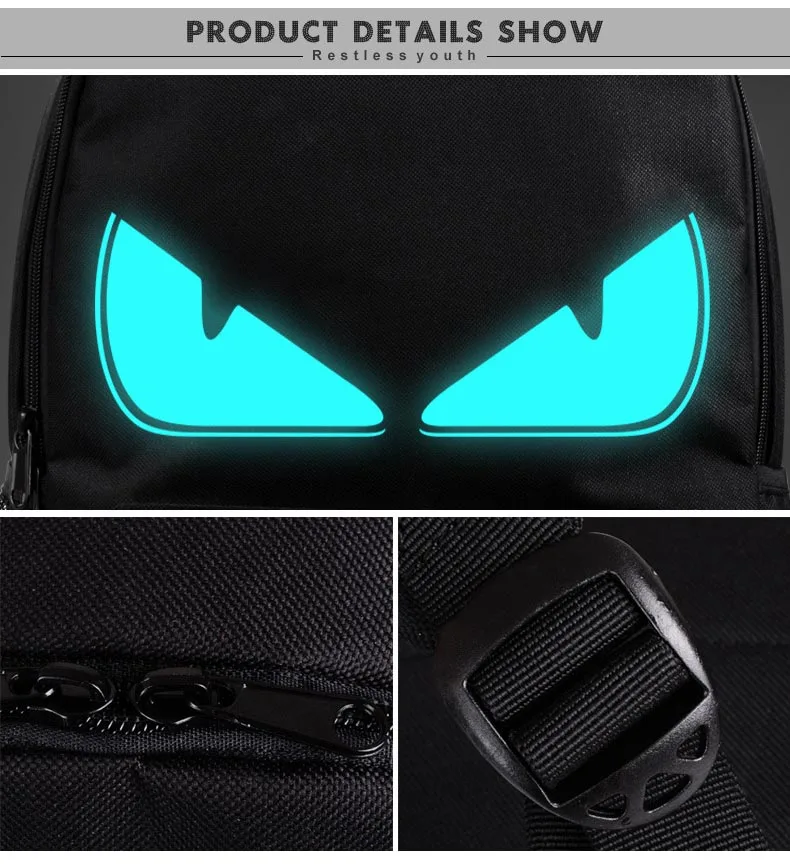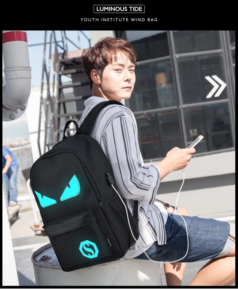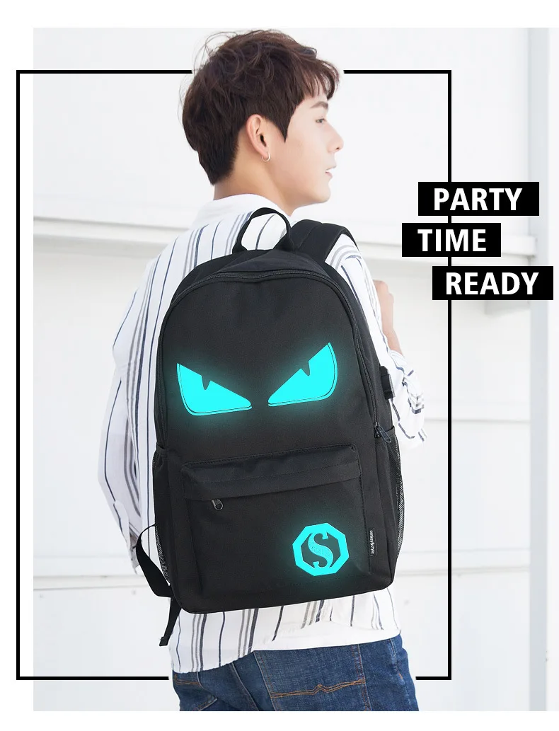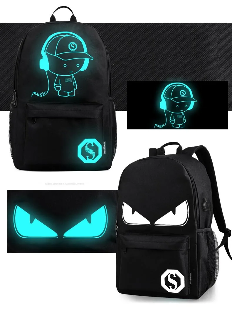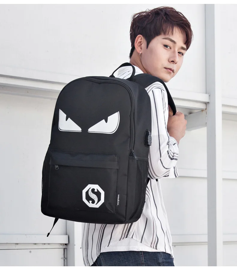 Anime Luminous Student School Bag School Backpack For Boy girl Daypack Multifunction USB Charging Port and Lock School Bag Black