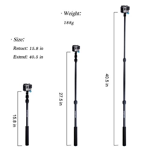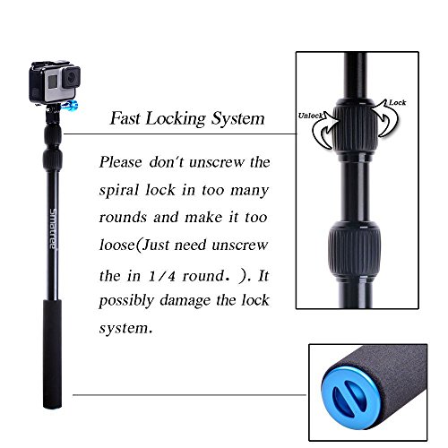Smatree SmaPole S1 All-Aluminium-Legierung Teleskopstange fur GoPro Hero 6/ 5/4/3+/3/2/1/Session [15,8-40,5]