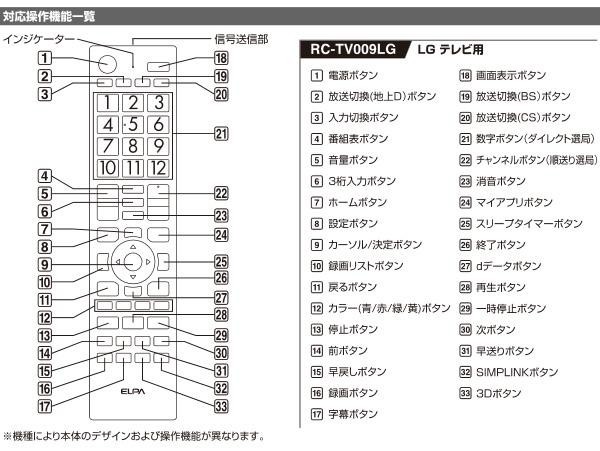 | リモコンの増設、取り替えに便利なテレビリモコン。 |