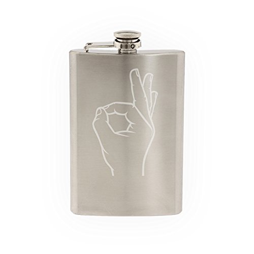 -. Title : Okay Sign - Hand Gesture Everything is Alright A-ok - Etched 8 Oz Stainless Steel Flask