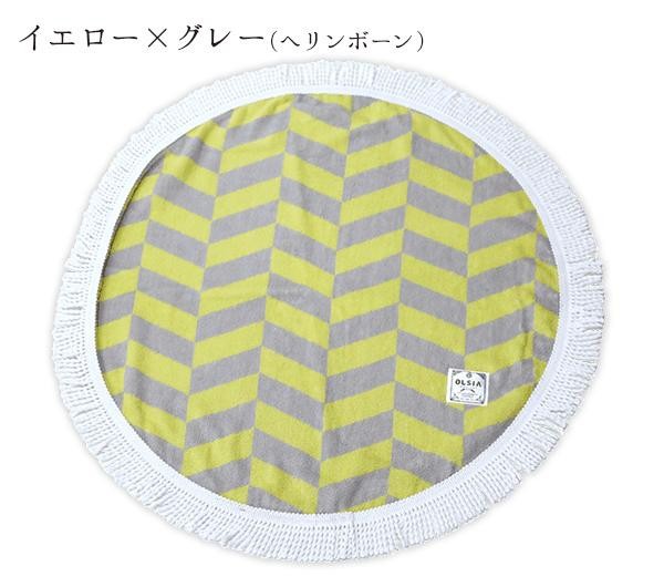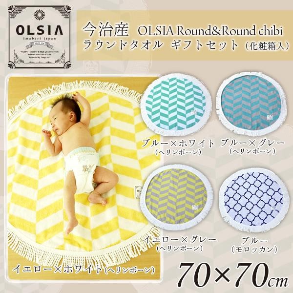 | 可愛いフリンジ付きのラウンドタオル♪直径約70cmの「chibi」サイズなので、赤ちゃんのお昼寝用や、オムツ替えに便利です。椅子やソファーにかけたり、ブランケットとしてなどお部屋での使用にもおすすめです。綿100%のタオル地なので、ご家庭の洗濯機で簡単に洗濯可能☆化粧箱入りなので、ベビーのお祝いなど贈り物にも最適です。 |