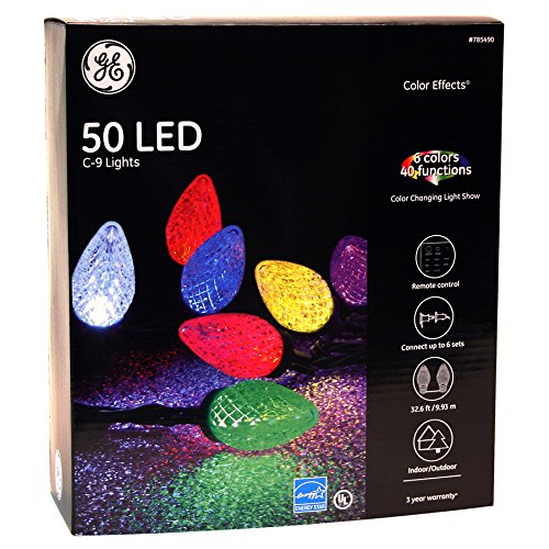 GE Color Effects 50-Count 32.67-ft Multi-Function Color Changing C9 LED Plug-in Indoor/Outdoor Christmas String Lights ENERGY STAR