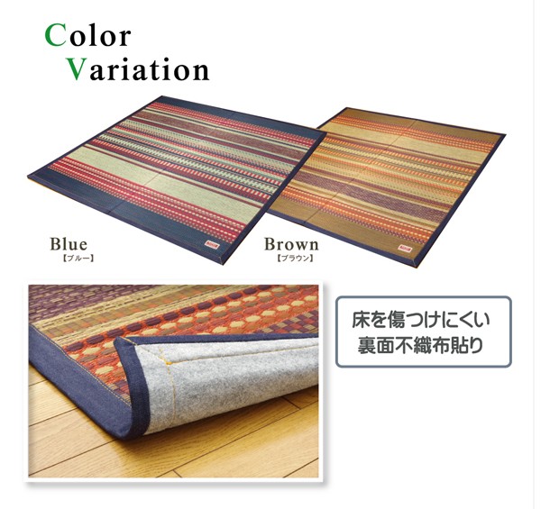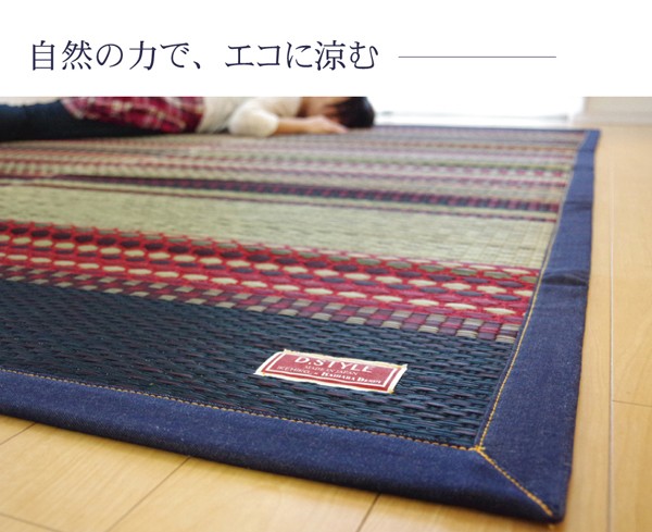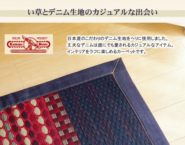【商品名】純国産 エスニック調 い草ラグカーペット『DXデニムラルフ』 ブルー 191×250cm