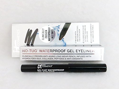 Utilizing cutting-edge technology exclusive to IT Cosmetics®, No Tug® Silk Automatic Waterproof Gel Eyeliners glide on saturated rich color without tugging on your delicate eyelids. These liners are clinically proven waterproof even after eight hours of wear! Developed with leading plastic surgeons, these eyeliners are infused with Anti-Aging technology and skin-care benefits including Hydrolyzed Collagen, Silk Proteins, and Vitamins C and E for younger looking lids. Paraben-free, Fragrance-free and Sulfate-free. * No Tug® technology applies rich pigment without tugging on lids during application. * Clinically proven waterproof even after 8 hours of wear. * Anti-Aging ingredients infused into liners for younger looking lids. * Rich luxe eyeliner color and smooth application on both the inner and outer rims and lash line.Feature
