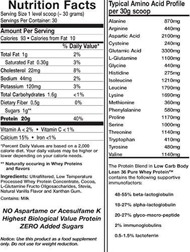 -. Feature : The Next Generation Protein: Over 9000 mg of Essential Amino Acids per scoop! / NO Artifical Sweeteners - no Aspartame or Acesulfame K - All Natural / Highest Biological Value Protein, 20g protein per 30g scoop / also contains 1000mg of L-Glutamine (in addition to naturally occurring L-Glutamic acid) per serving / Low Carb (1.6g per scoop), Low fat (1g per scoop), No Soy