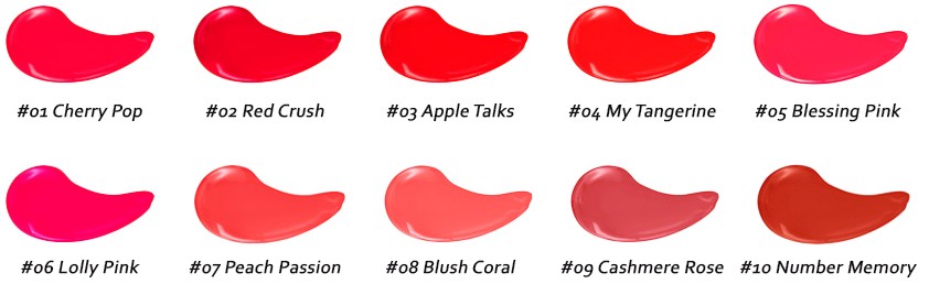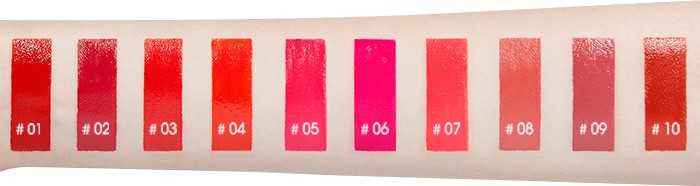 Lip tint with a soft, velvety texture goes on the lips for a vivid, matted finish.