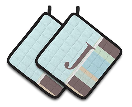 Caroline's Treasures Letter J Initial Monogram - Blue Stripes Pair of Pot Holders CJ1003-JPTHD, 7.5HX7.5W, Multicolor