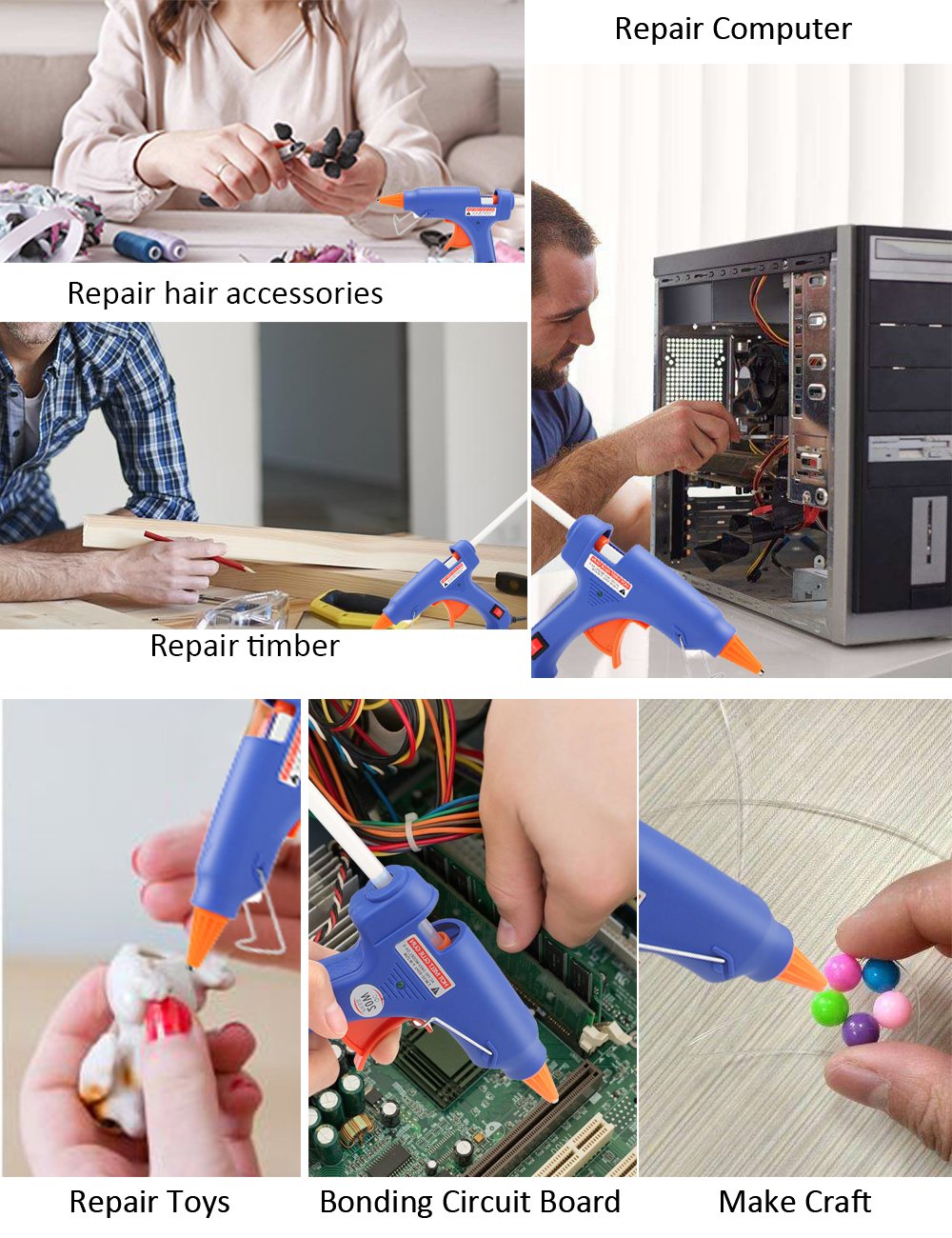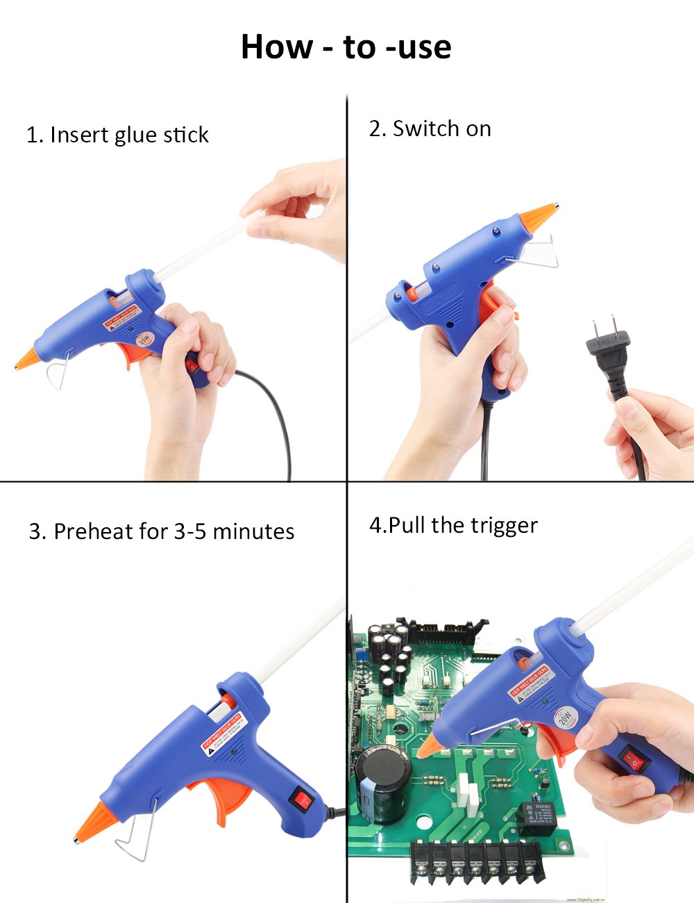 2. Do not keep working glue guns away from children or to avoid getting electric shocks when using them in humid environments.