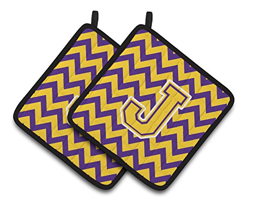 Caroline's Treasures Letter J Chevron Purple & Gold Pair of Pot Holders CJ1041-JPTHD, 7.5HX7.5W, Multicolor