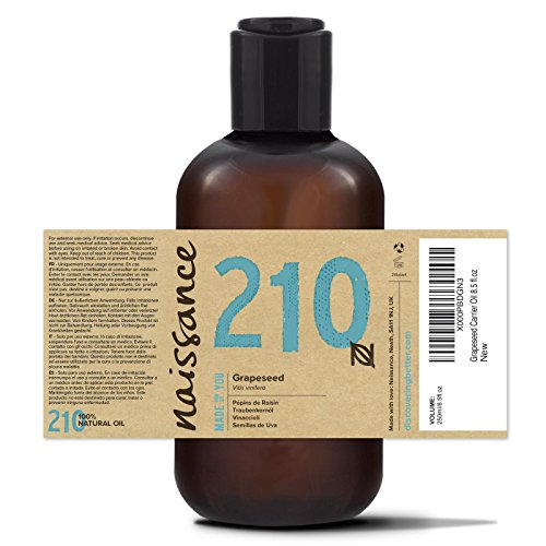 Naissance Pure Cold Pressed Grapeseed Carrier Oil 8.5 fl. oz. Hypoallergenic and suitable for Sensitive Skin.