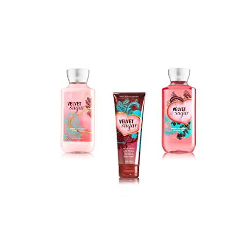 Includes one each of Bath Body Works VELVET SUGAR Body Lotion 8oz, Shower Gel 10 oz & Body Cream 8 oz